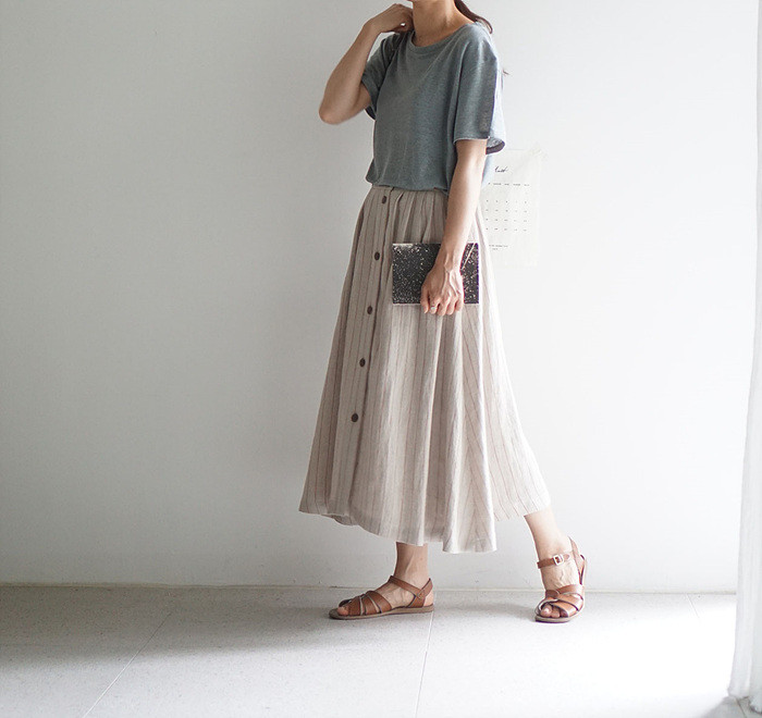 자댕 린넨 스커트와 함께.