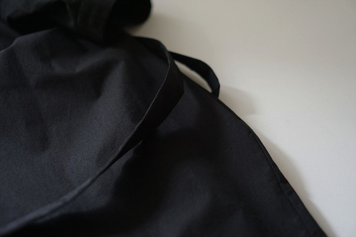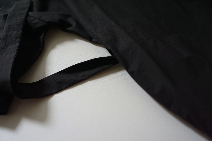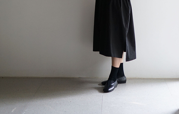 앞보다 뒤가 살짝 긴 기장감의 밑단이에요.