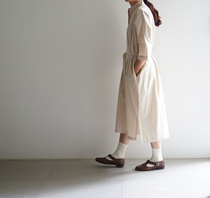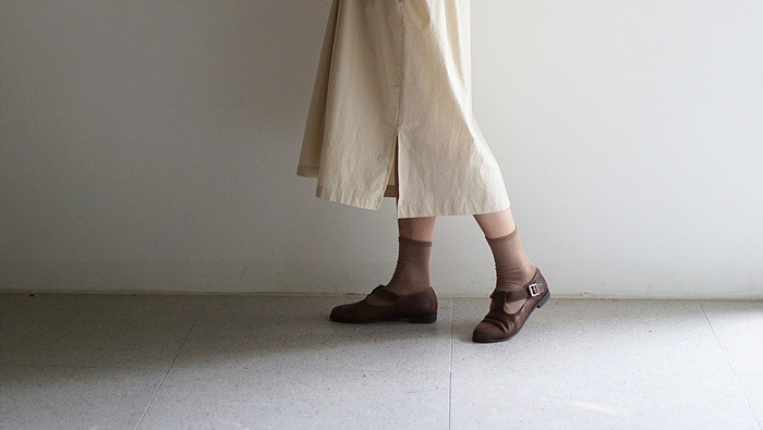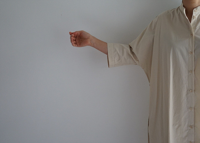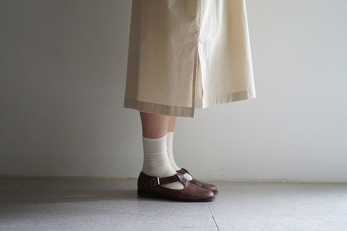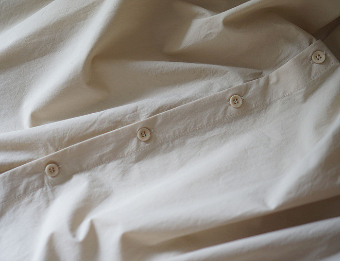 앞보다 뒤가 살짝 긴 기장감의 밑단이에요.