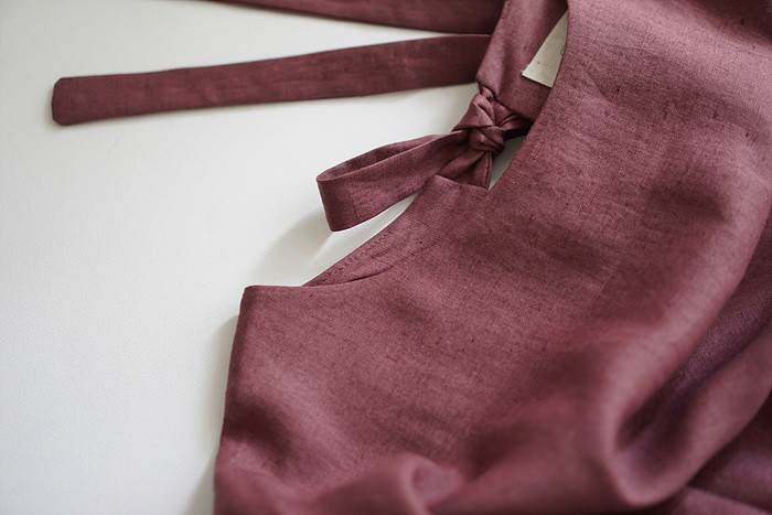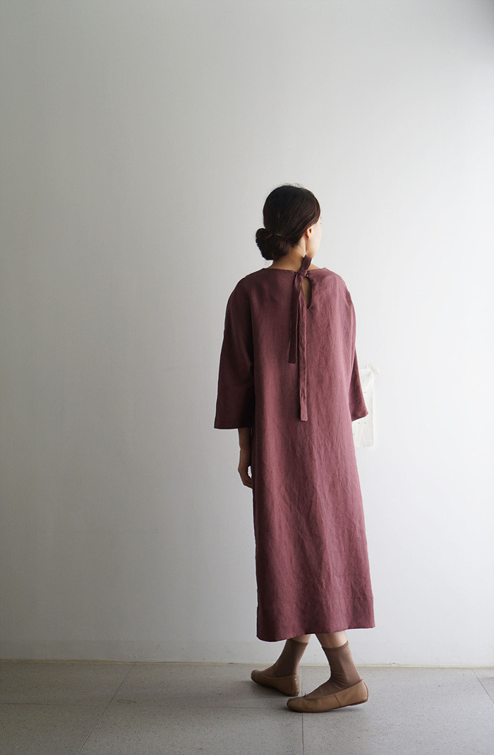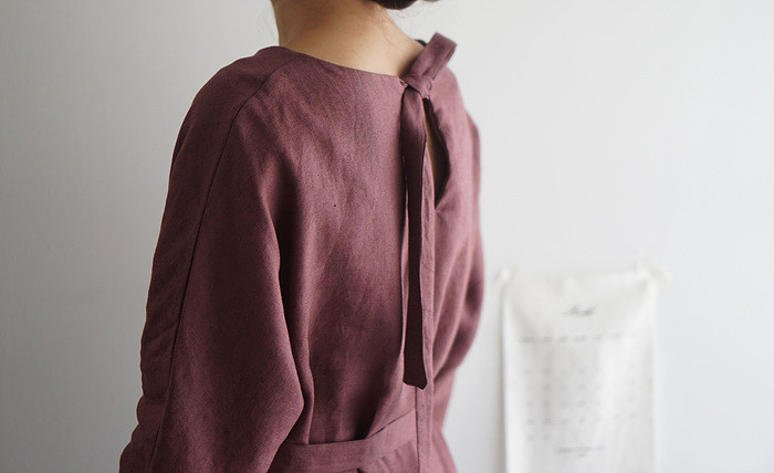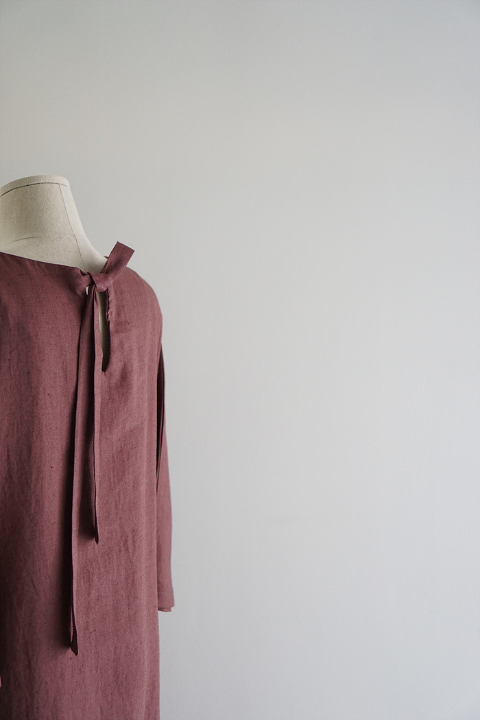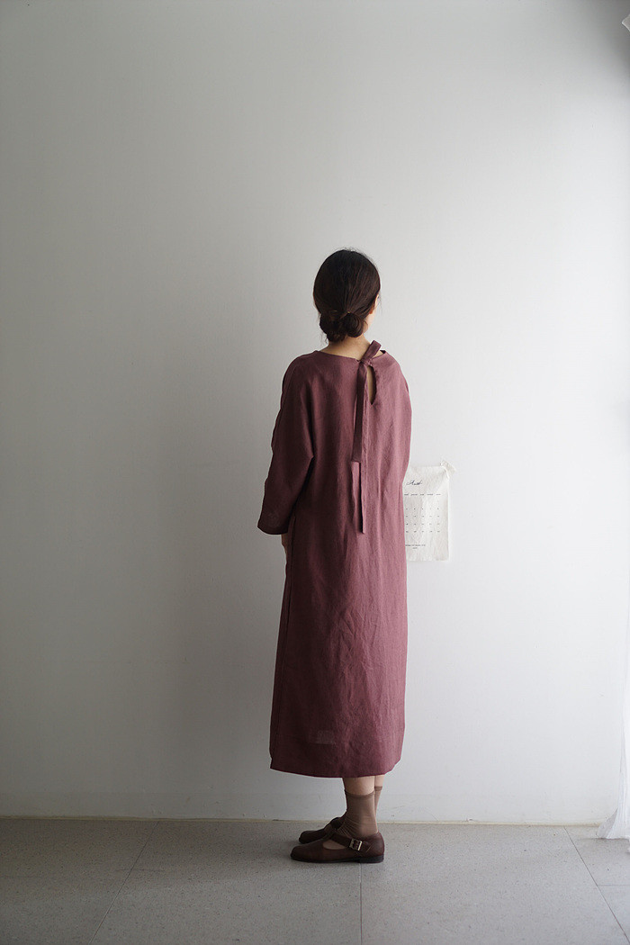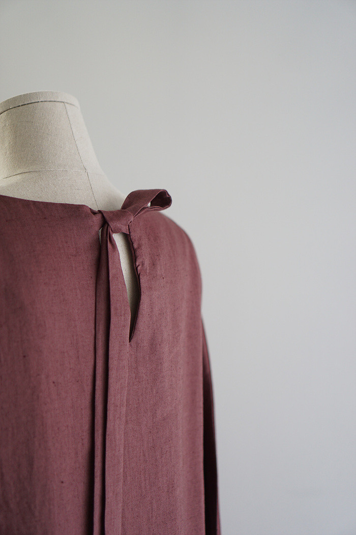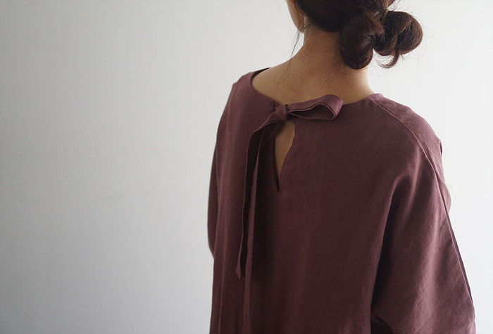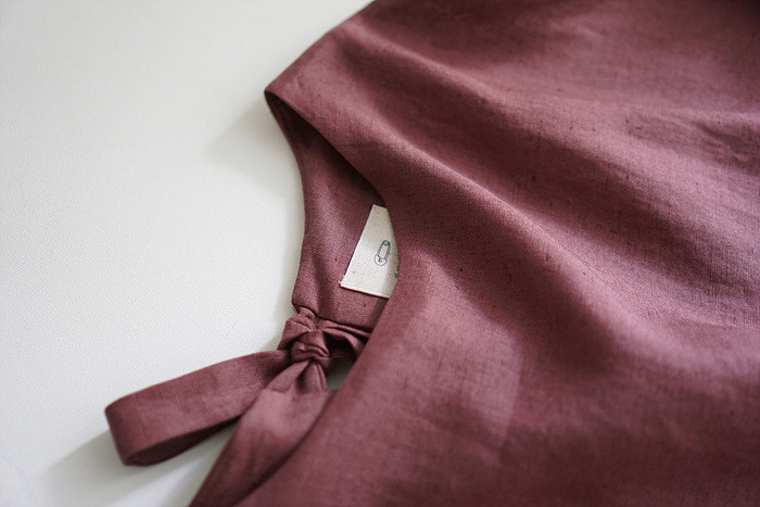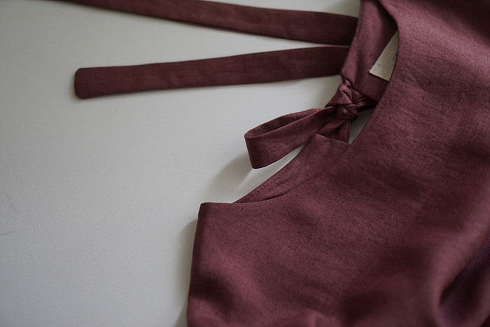 길게 늘어뜨린 매듭 디테일이 뒷목에 있어요.