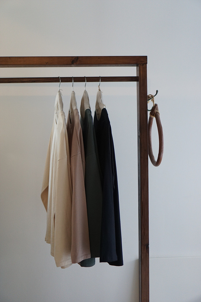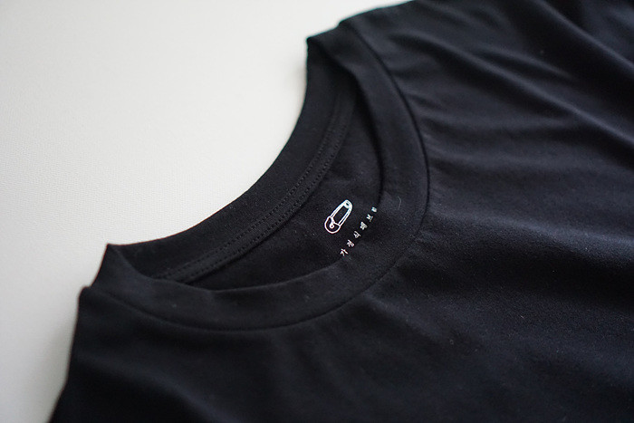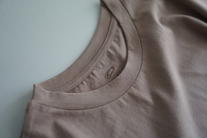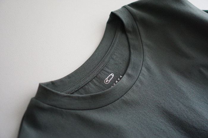 목을 감싸주는 편안한 라운드 넥이에요.