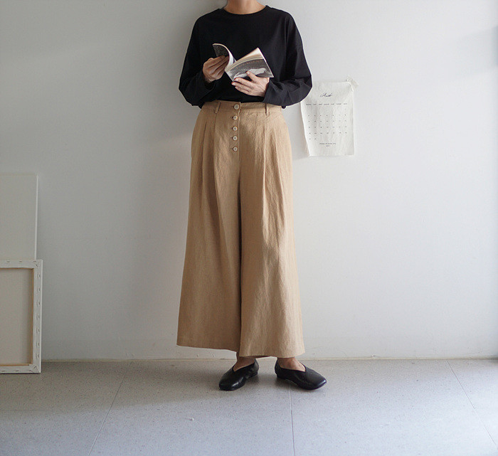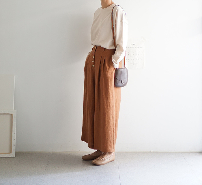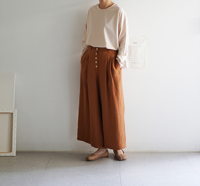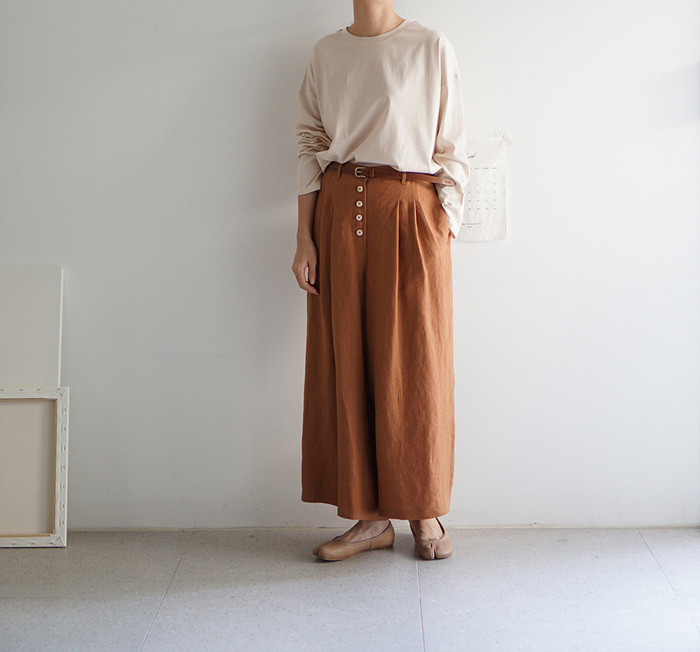 린넨 와이드 팬츠, brick 컬러와 함께