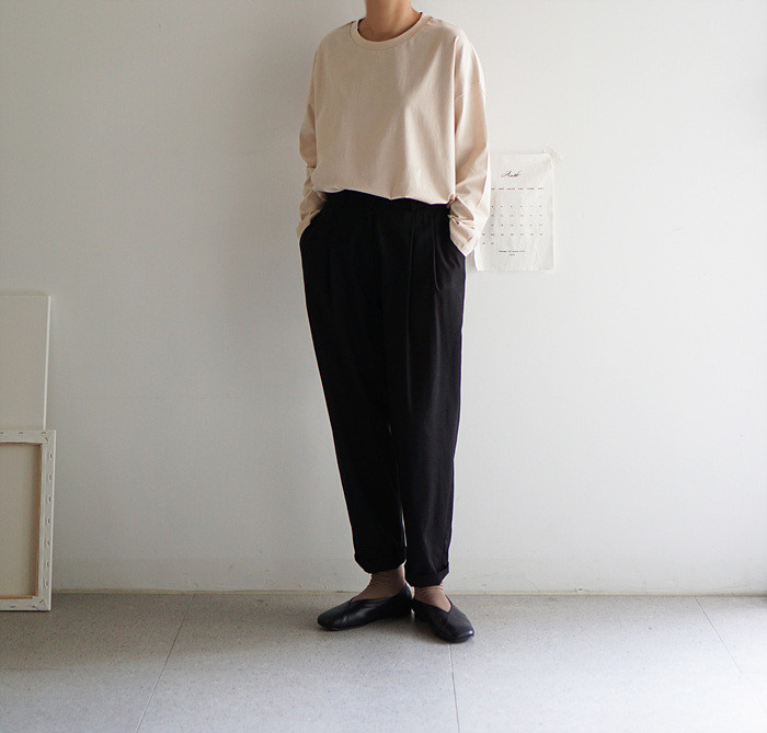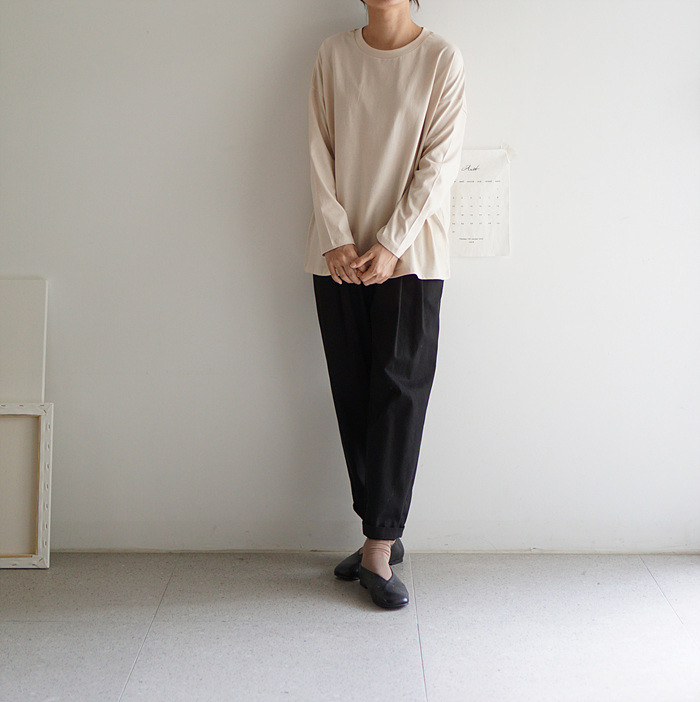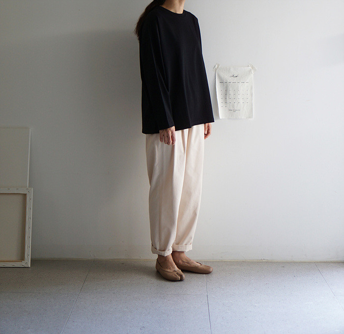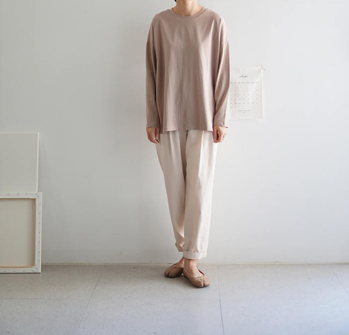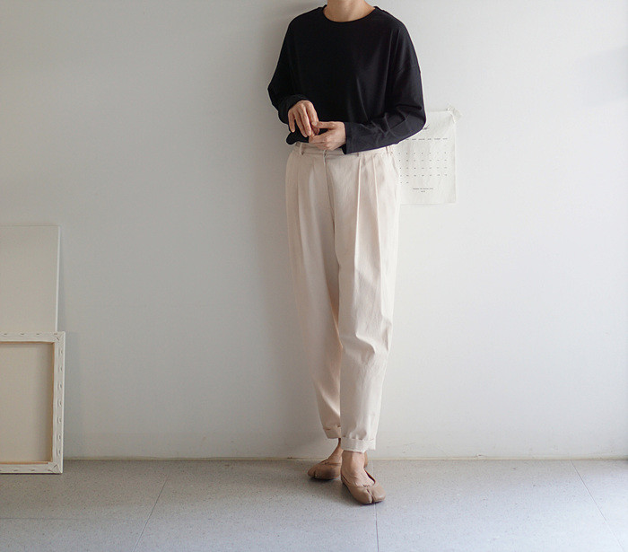 아이보리컬러의 컴피 팬츠와 함께.