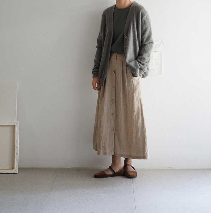 린넨 와이드 팬츠와 함께.