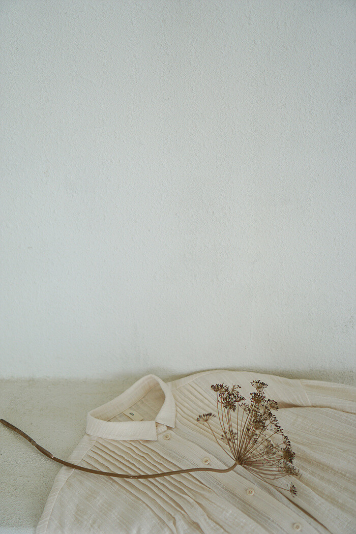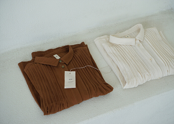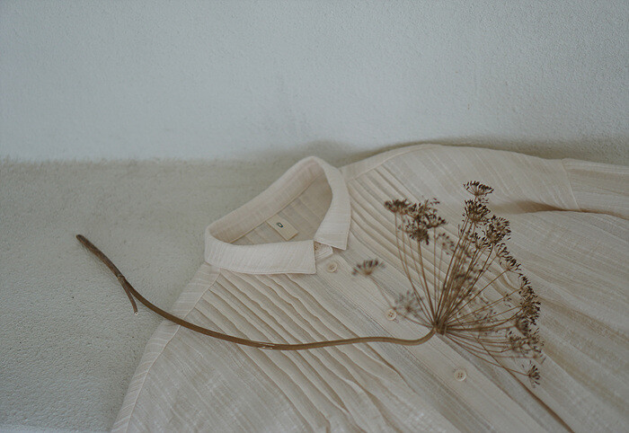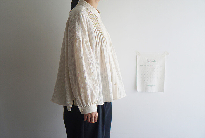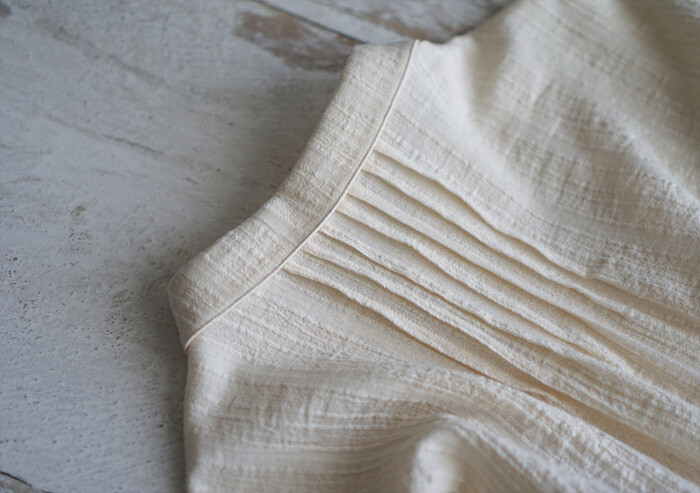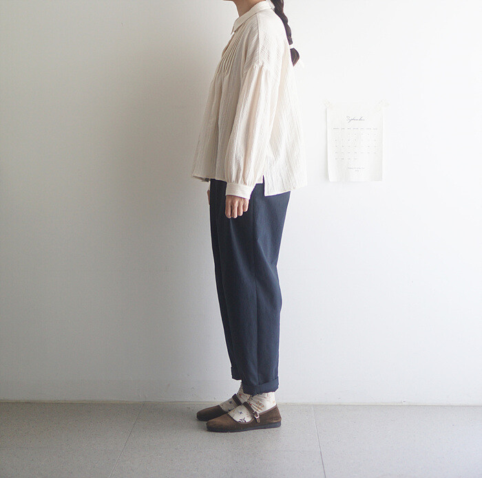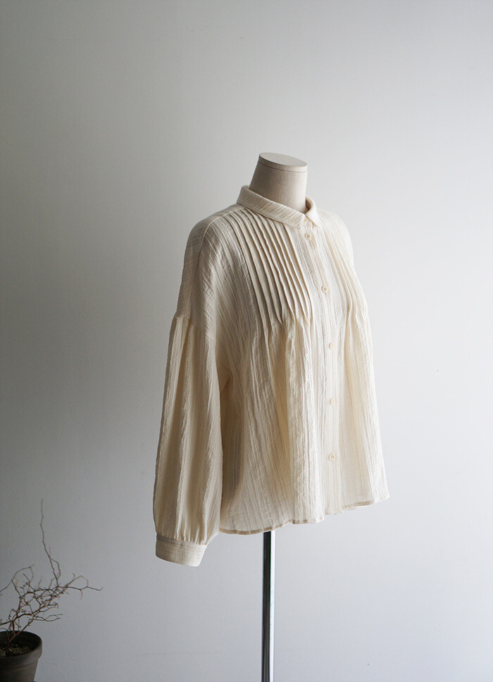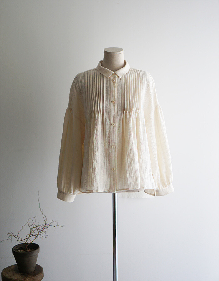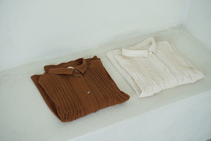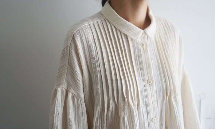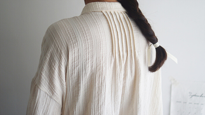 잔잔한 핀턱 디테일이 자리잡고 있습니다.