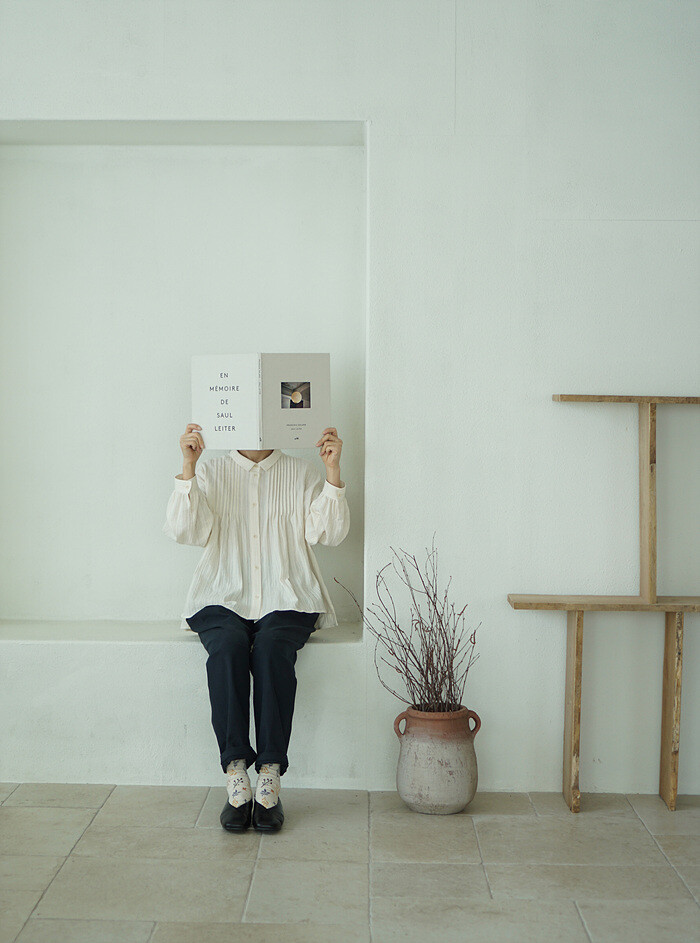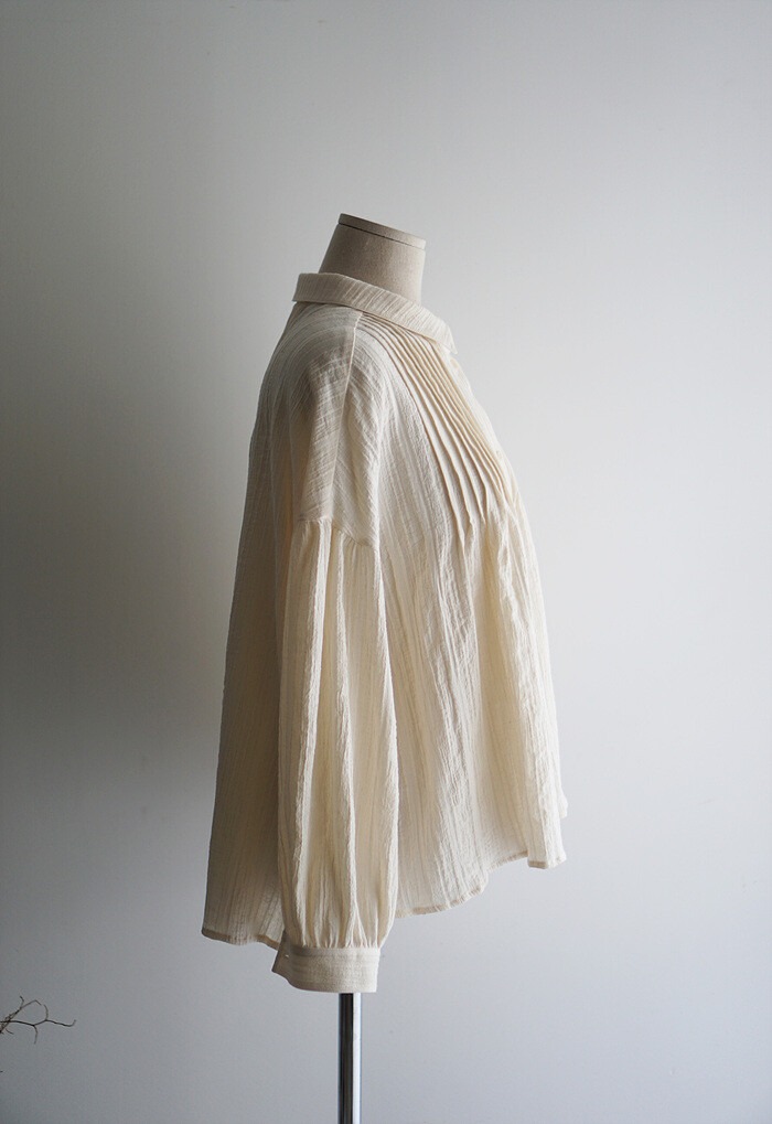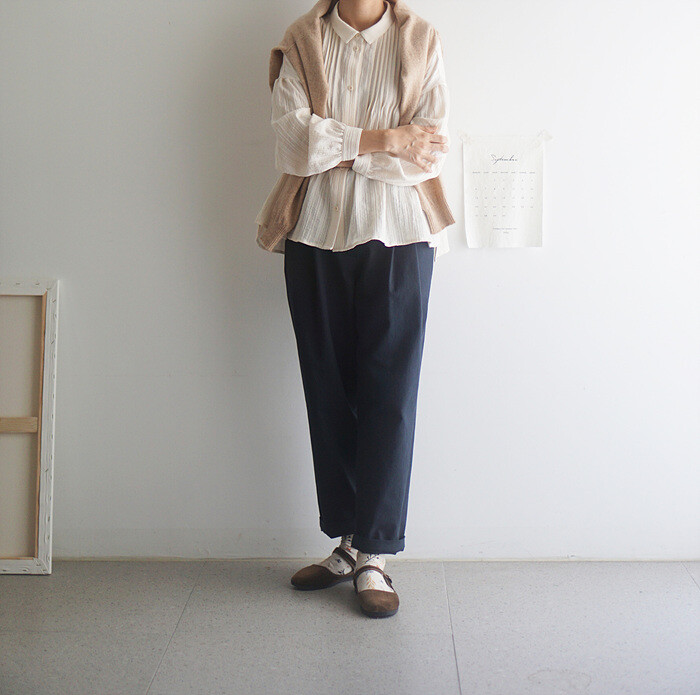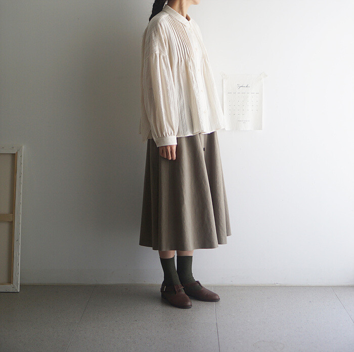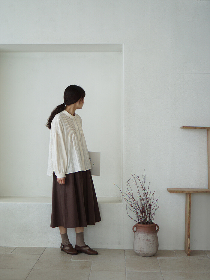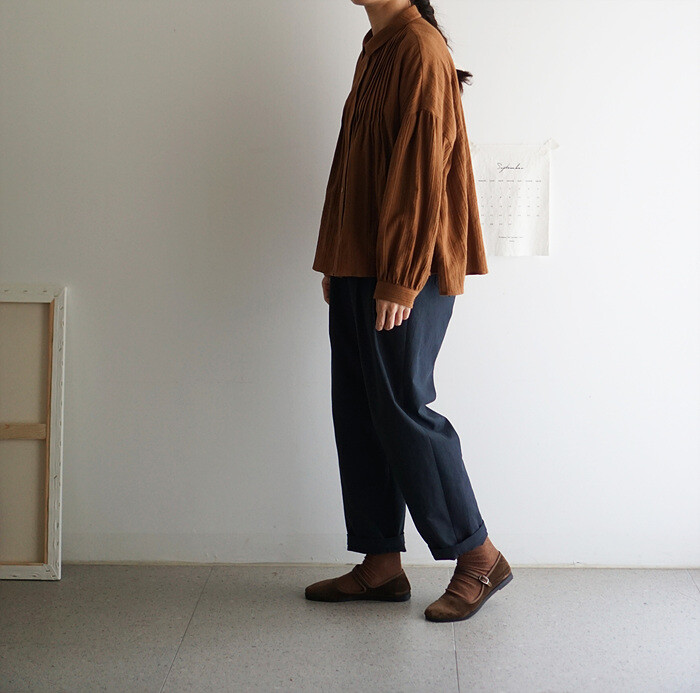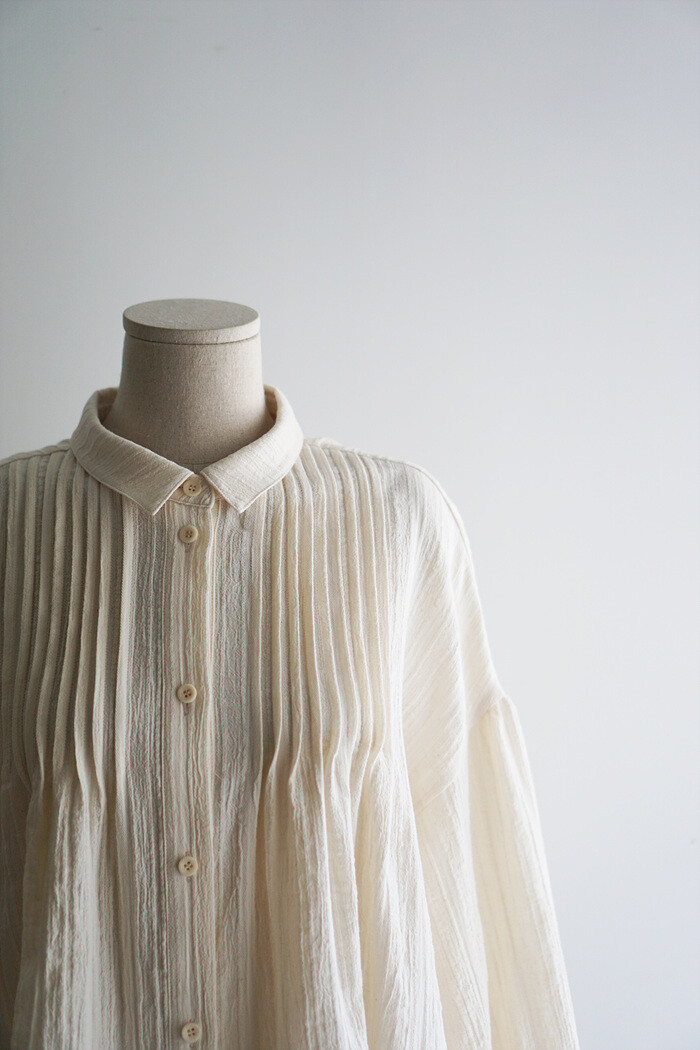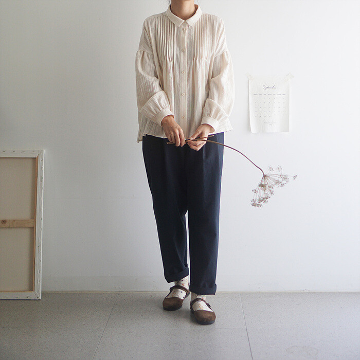 잔잔한 핀턱 디테일이 자리잡고 있습니다.