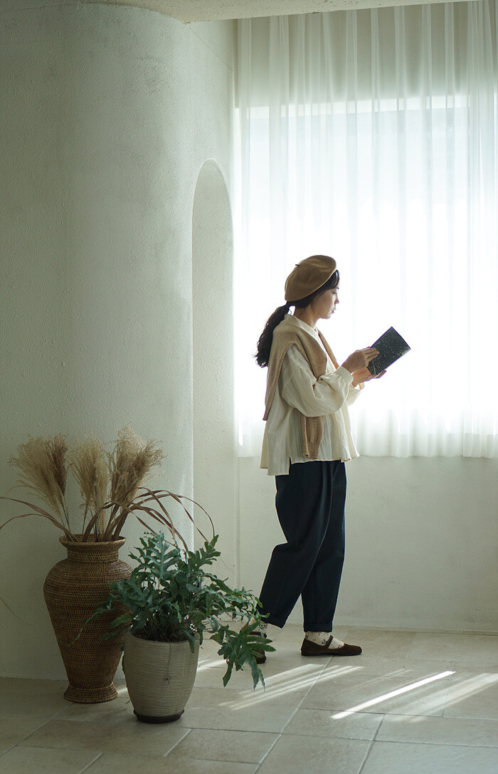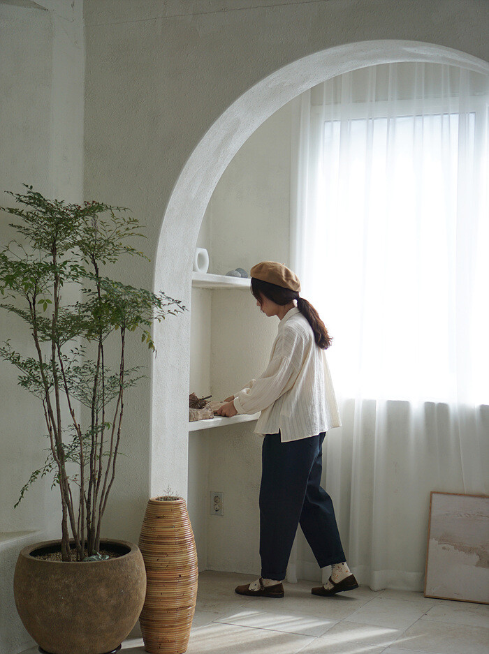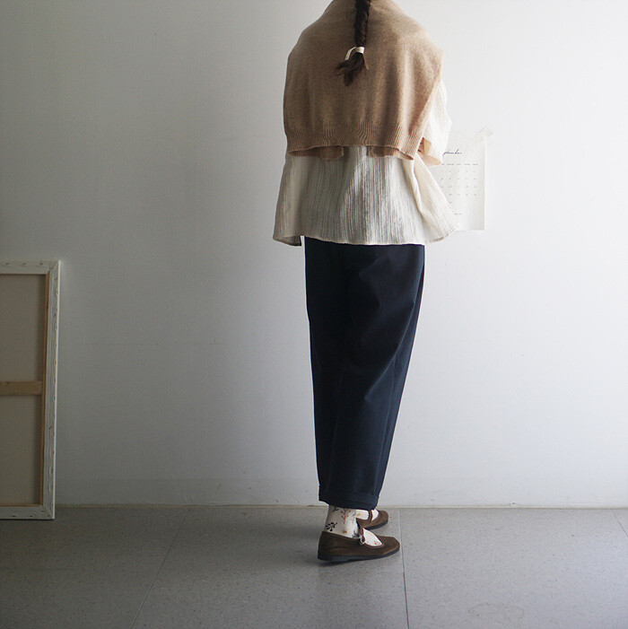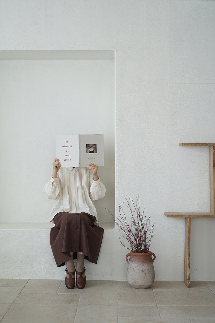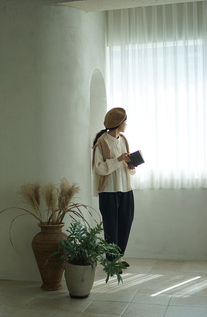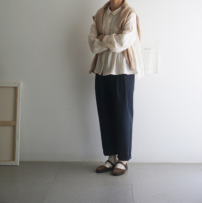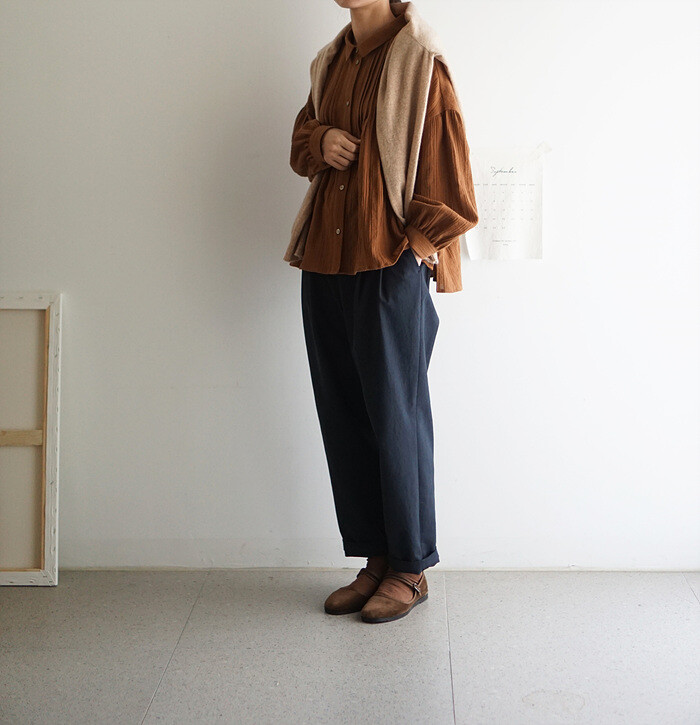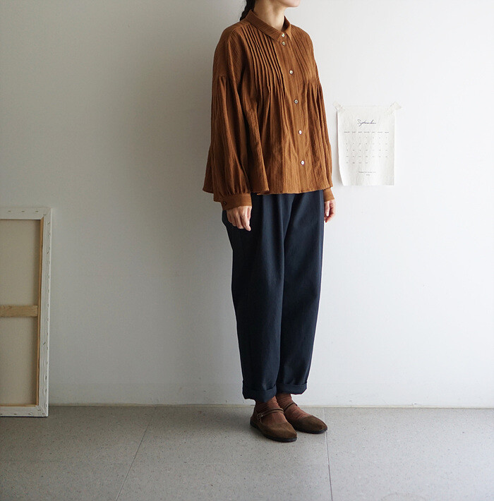 잔잔한 핀턱 디테일이 자리잡고 있습니다.