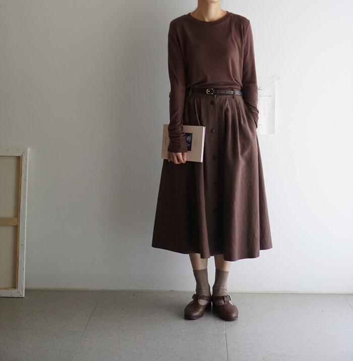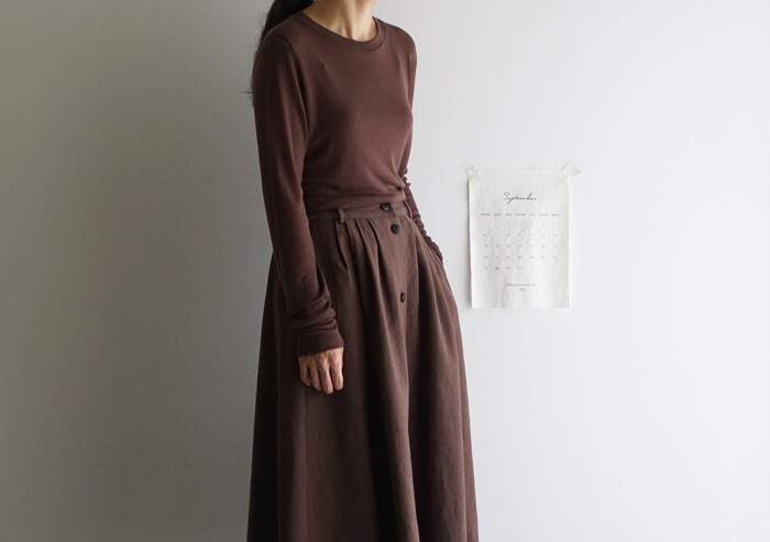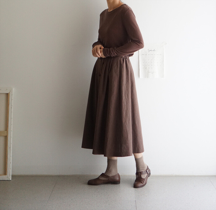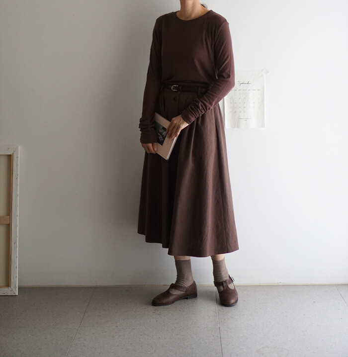 실루엣이 잡히는 풀 스커트 입니다.