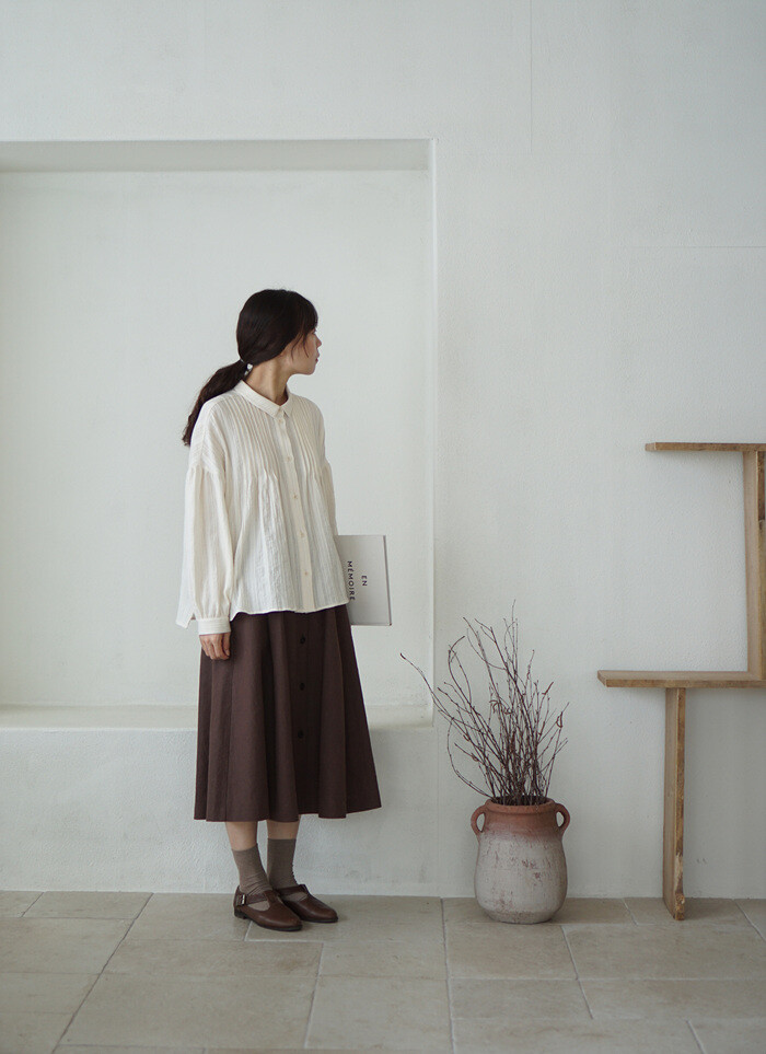 핀턱 블라우스 오트밀과 함께.
