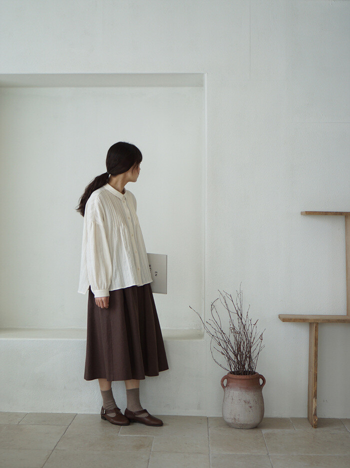 핀턱 블라우스와 함께.