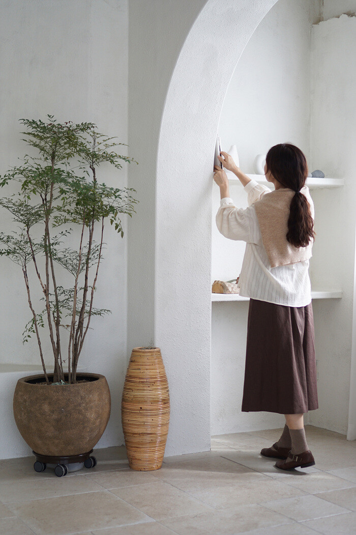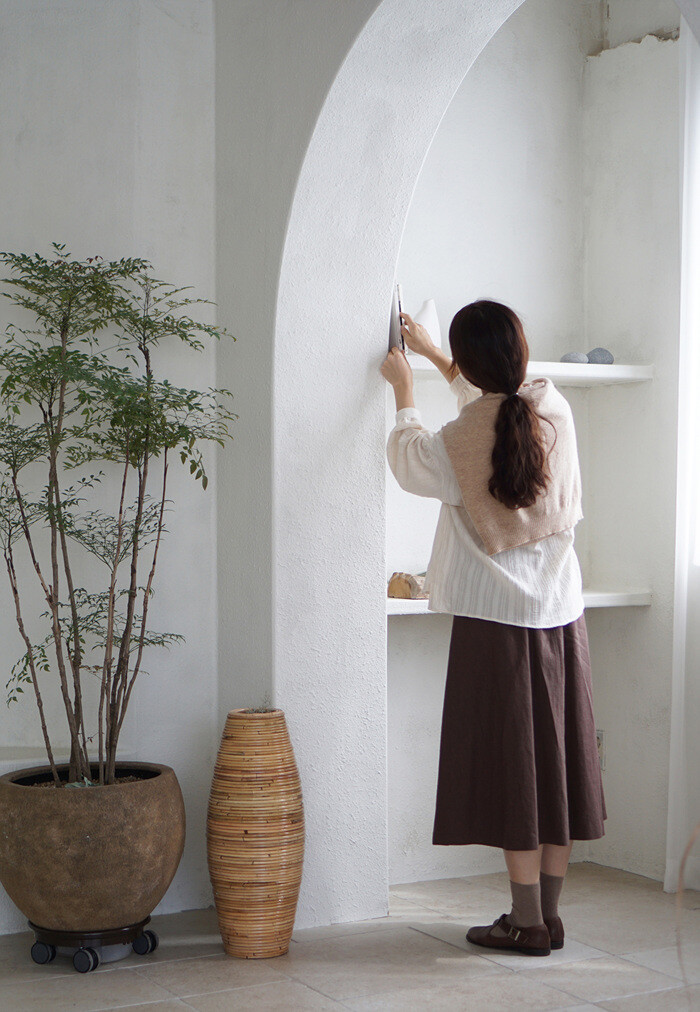 두께감 있는 린넨 원단과 만나