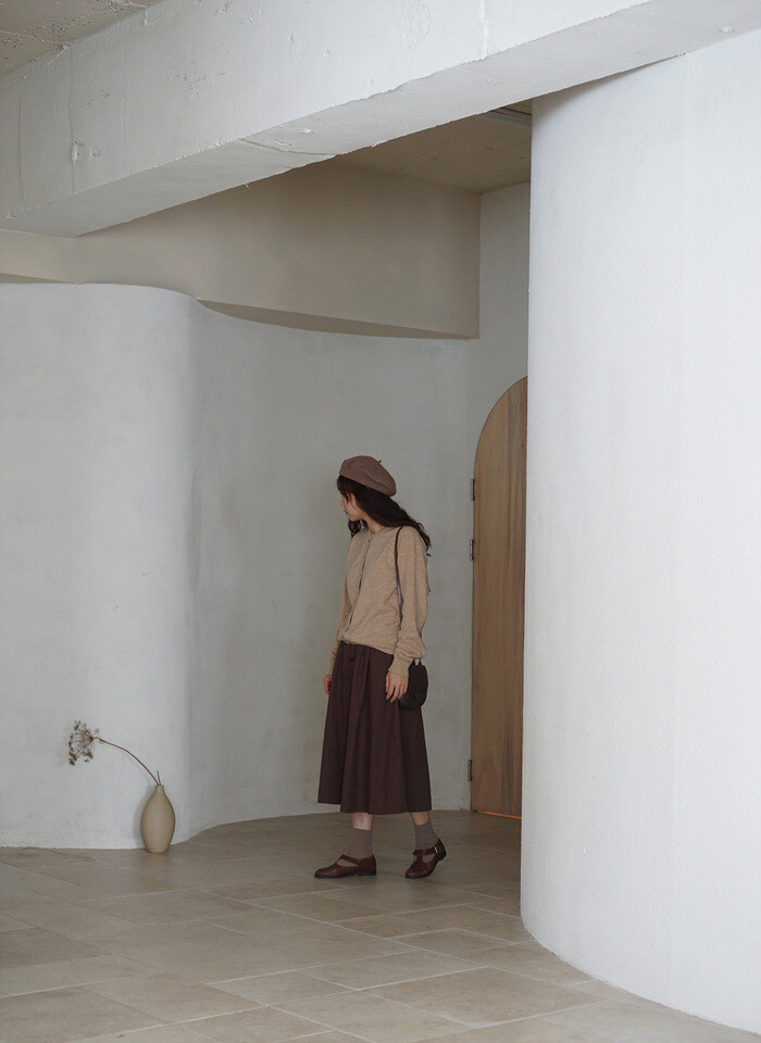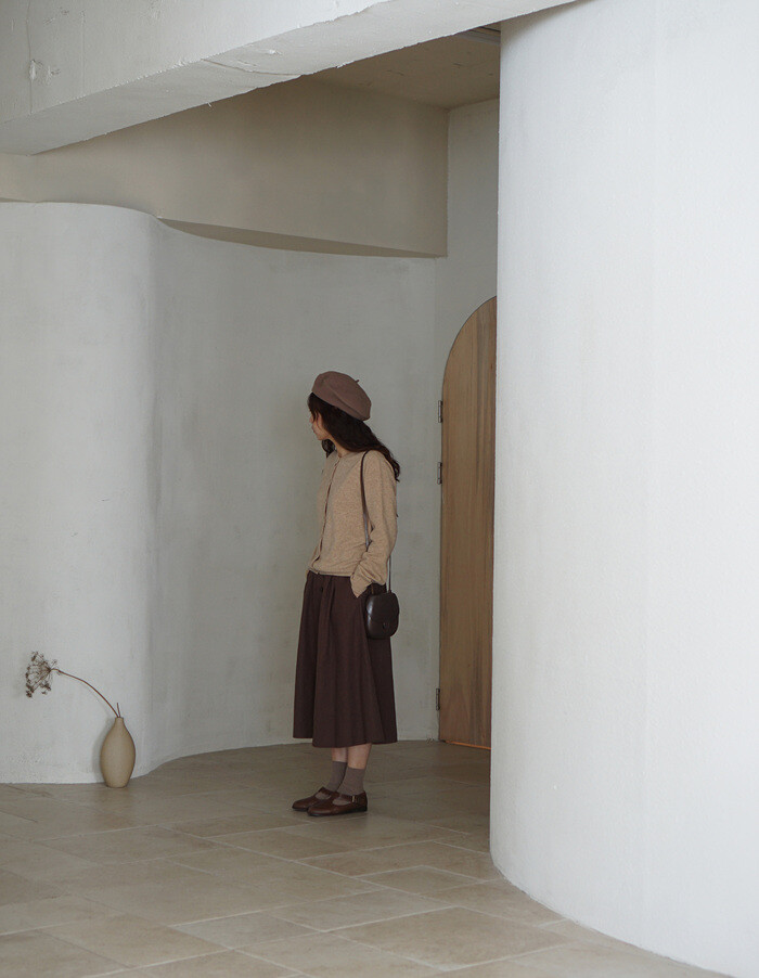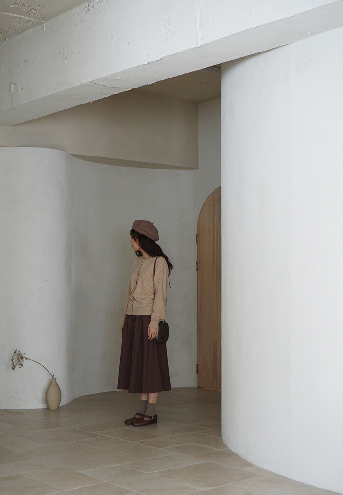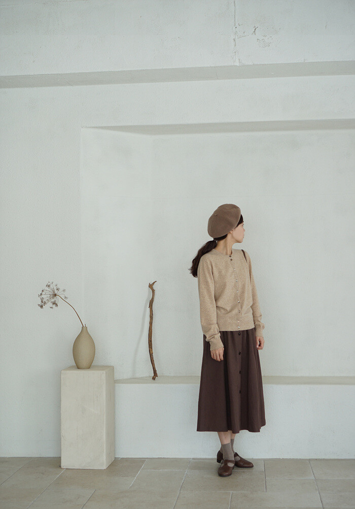 베이지 톤의 클래식 가디건과 함께.