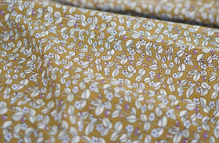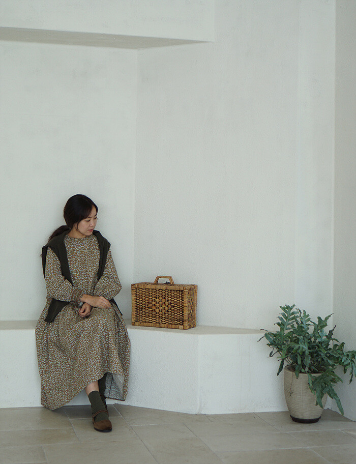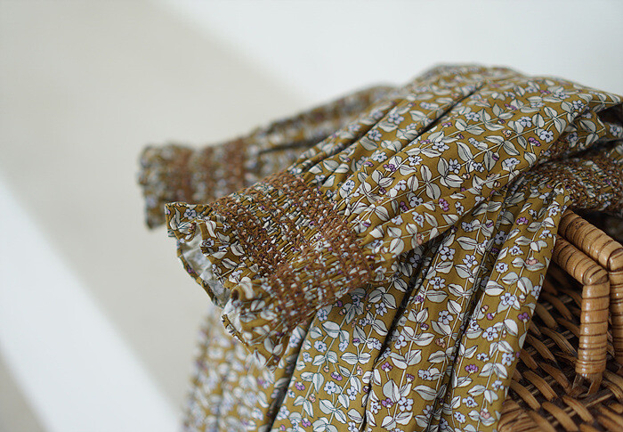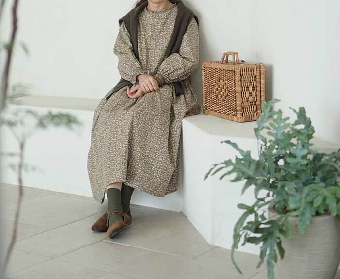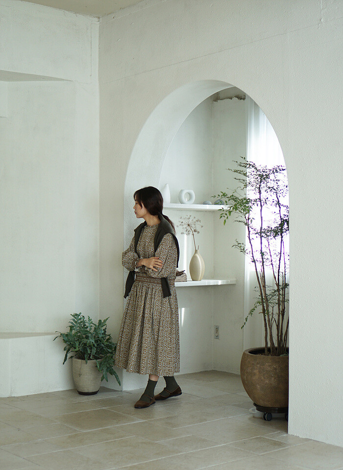 잔잔한 올리브빛 잔꽃이 프린트 된,