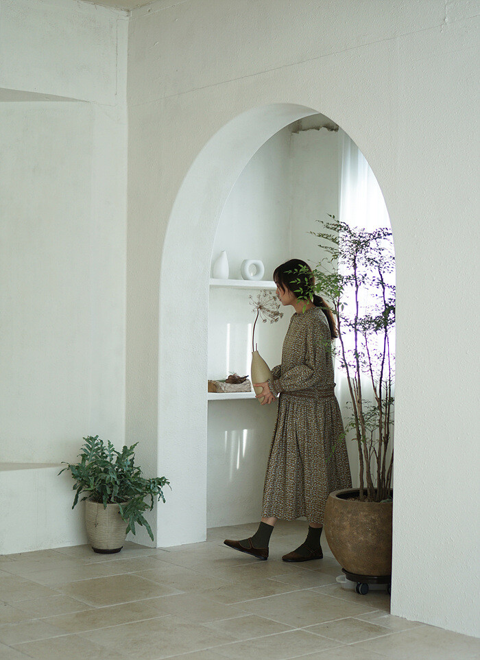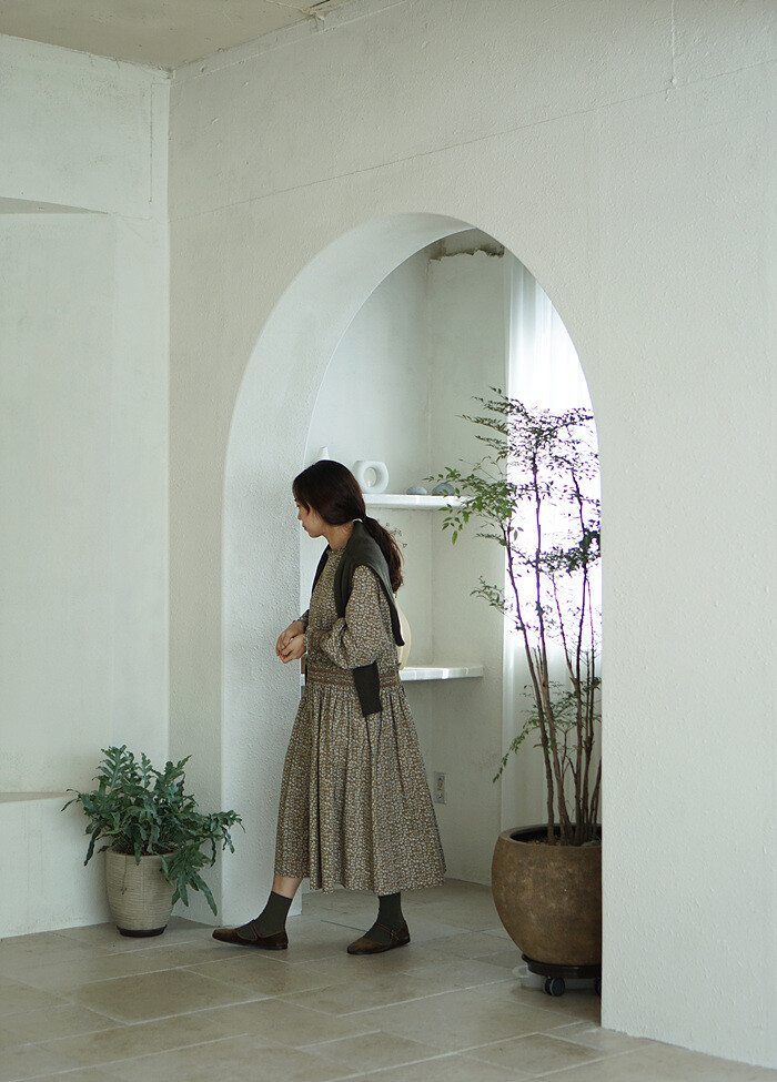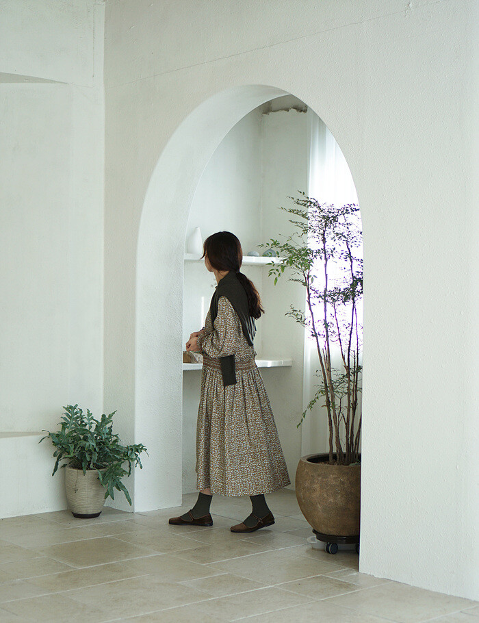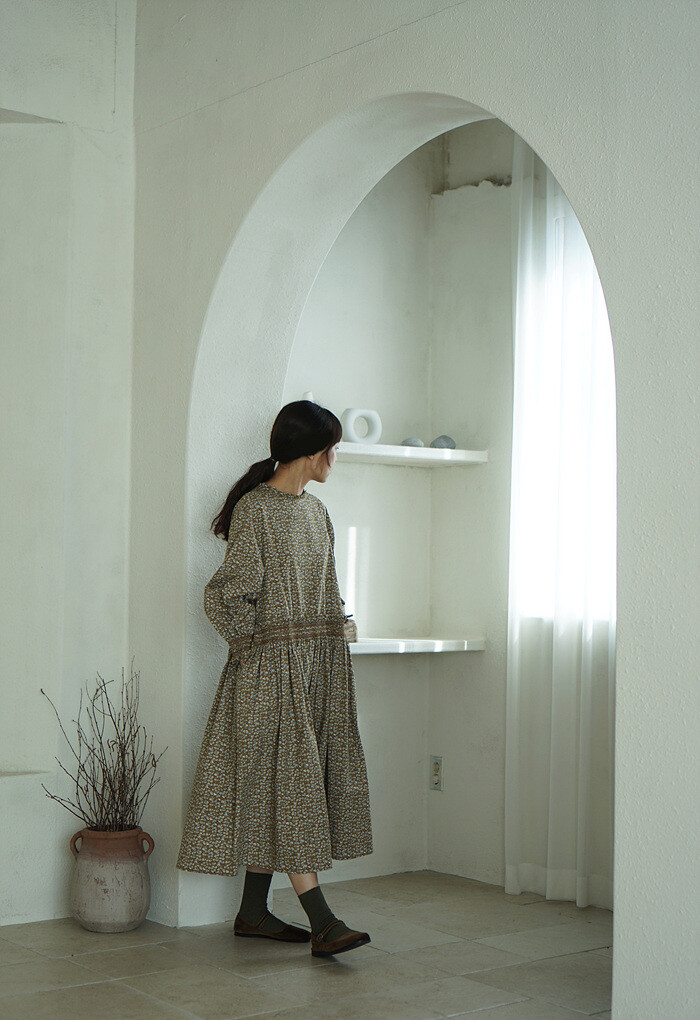 소맷단과 허릿단의 스모킹 디테일이 만드는