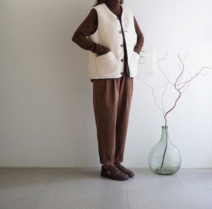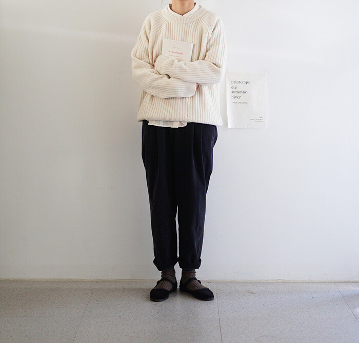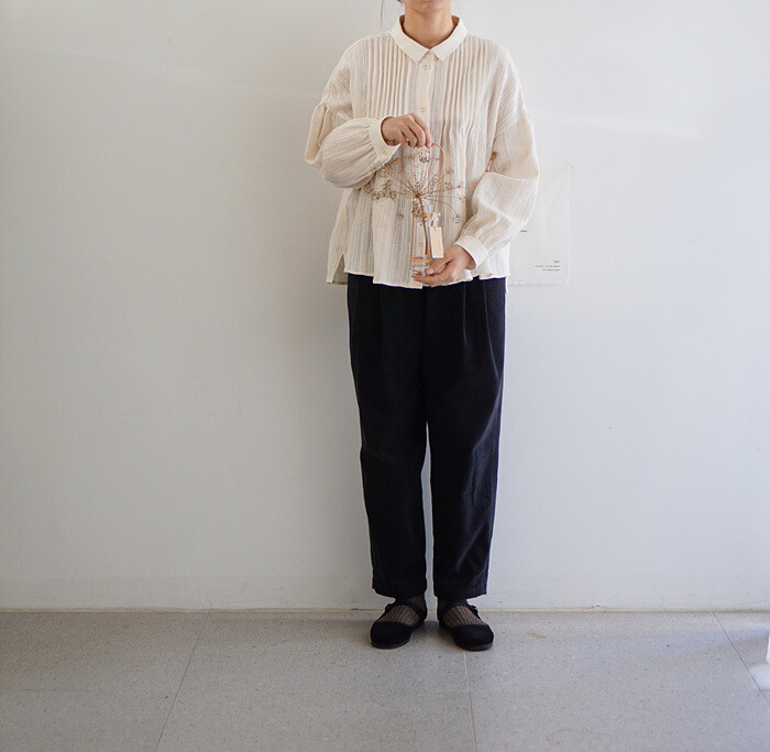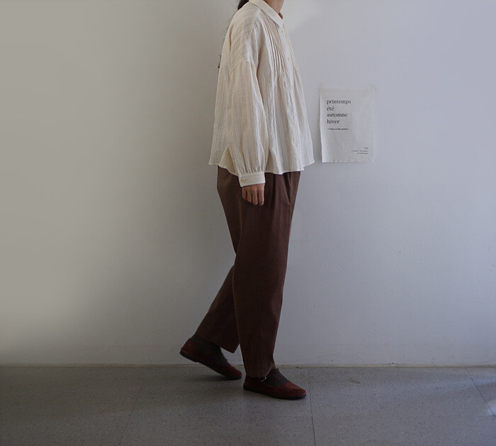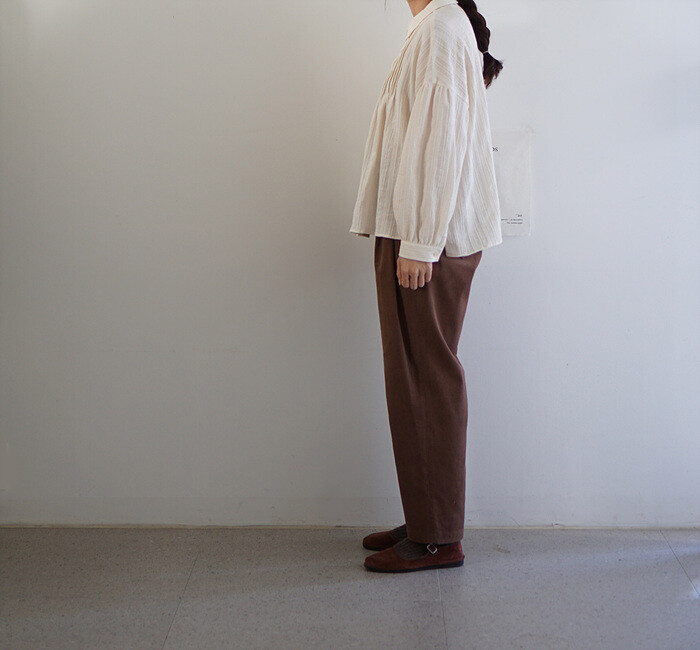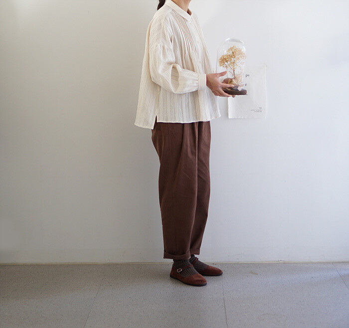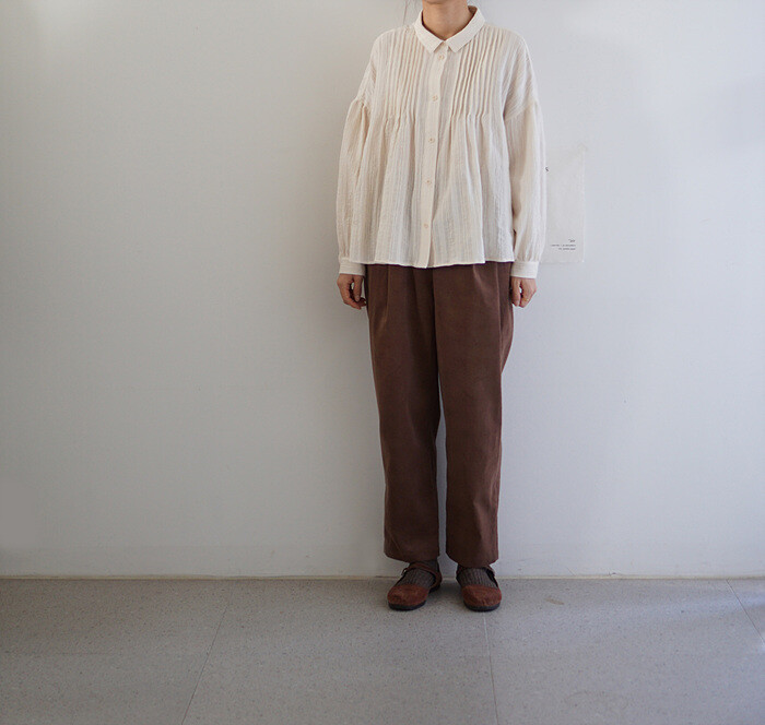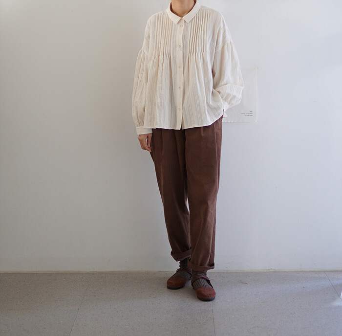 핀턱 블라우스, 오트밀 컬러와 함께.