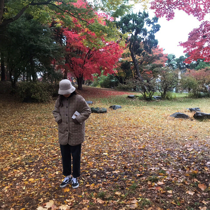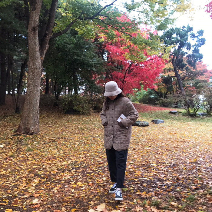 양면 퀼팅 자켓의 체크패턴과 함께.