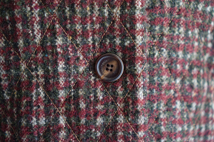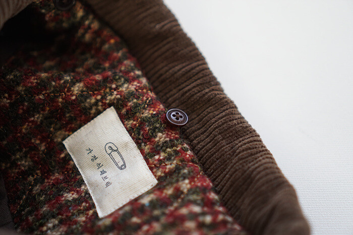 옆 트임 디테일에는 단추 장식이 있습니다.