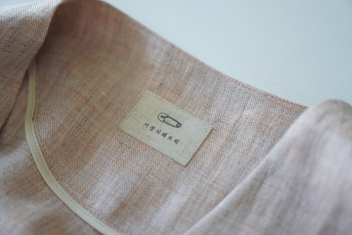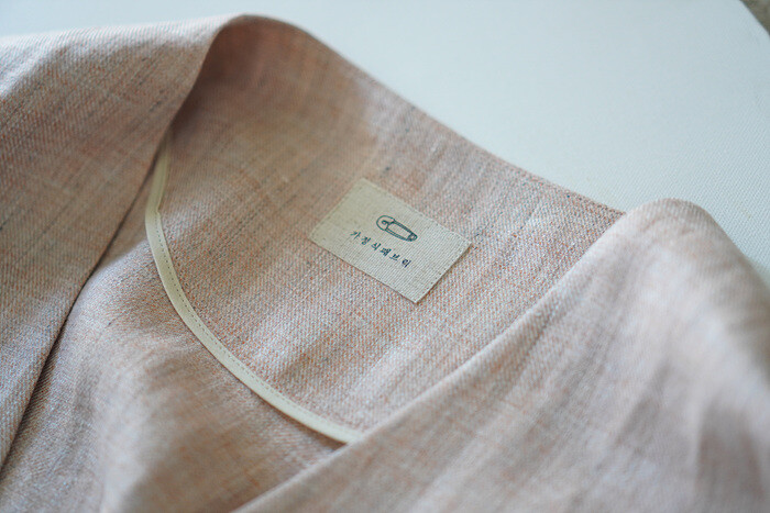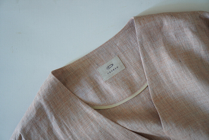 뒷목 시접 역시, 바이어스로 마감하였습니다.
