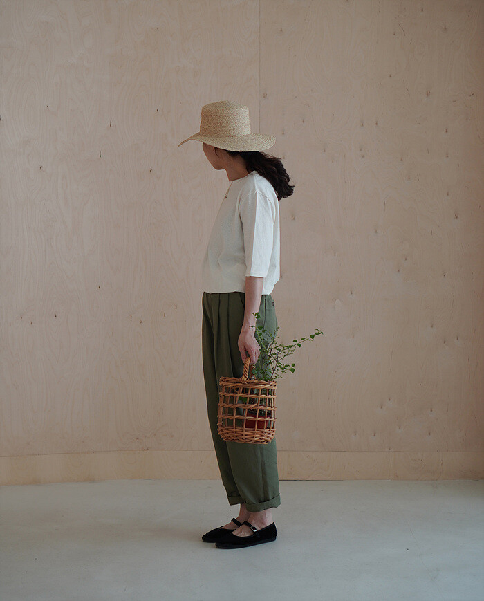 캐주얼한 느낌으로 컴피팬츠와 함께.