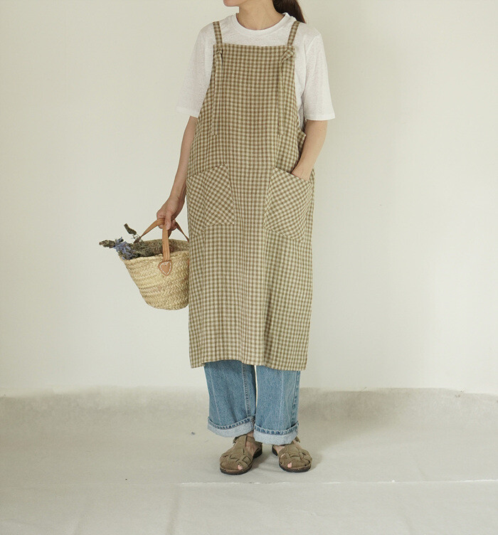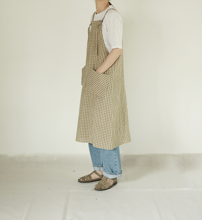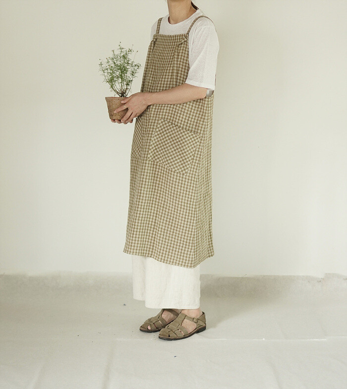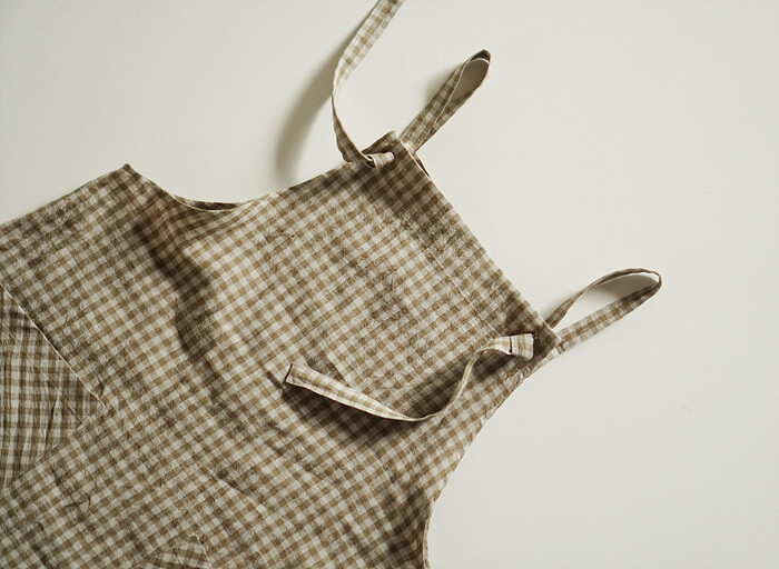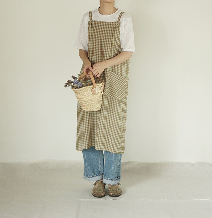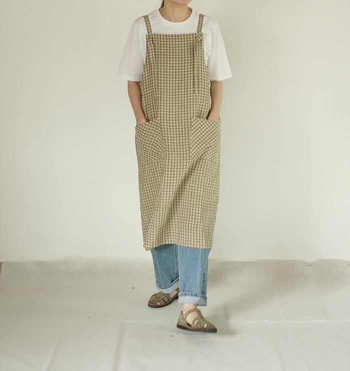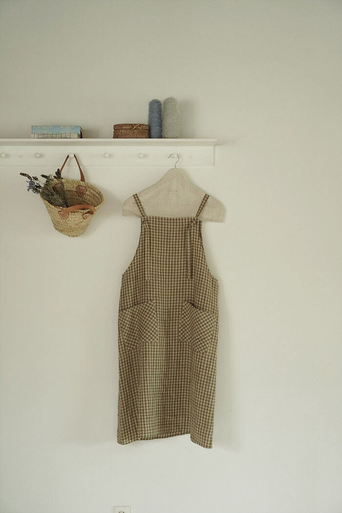 에이프런 원피스, leaf check