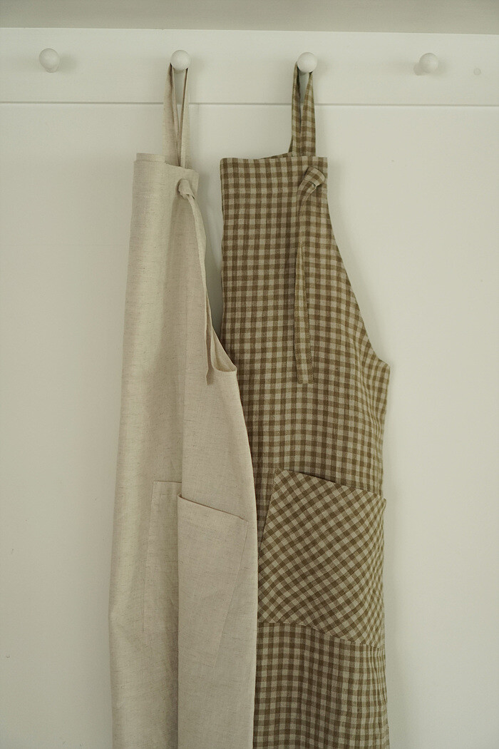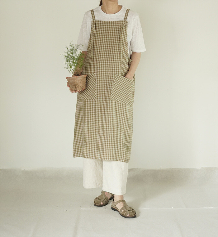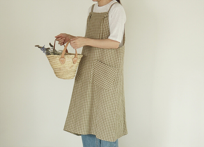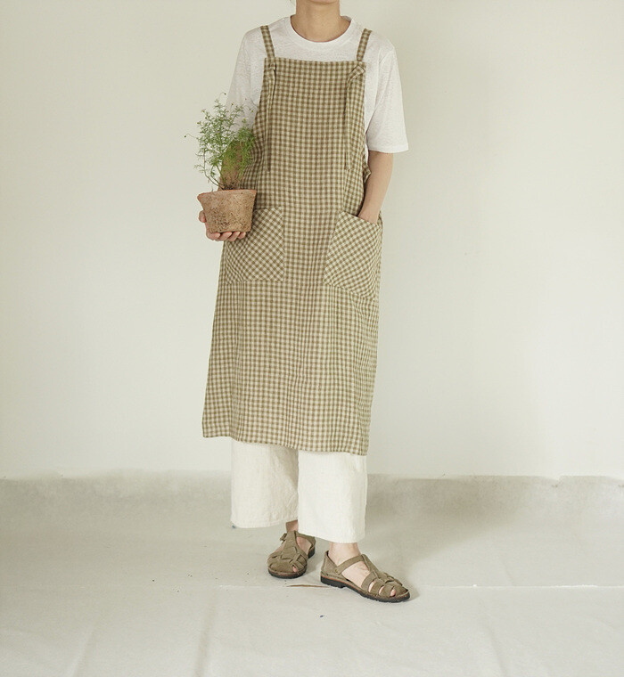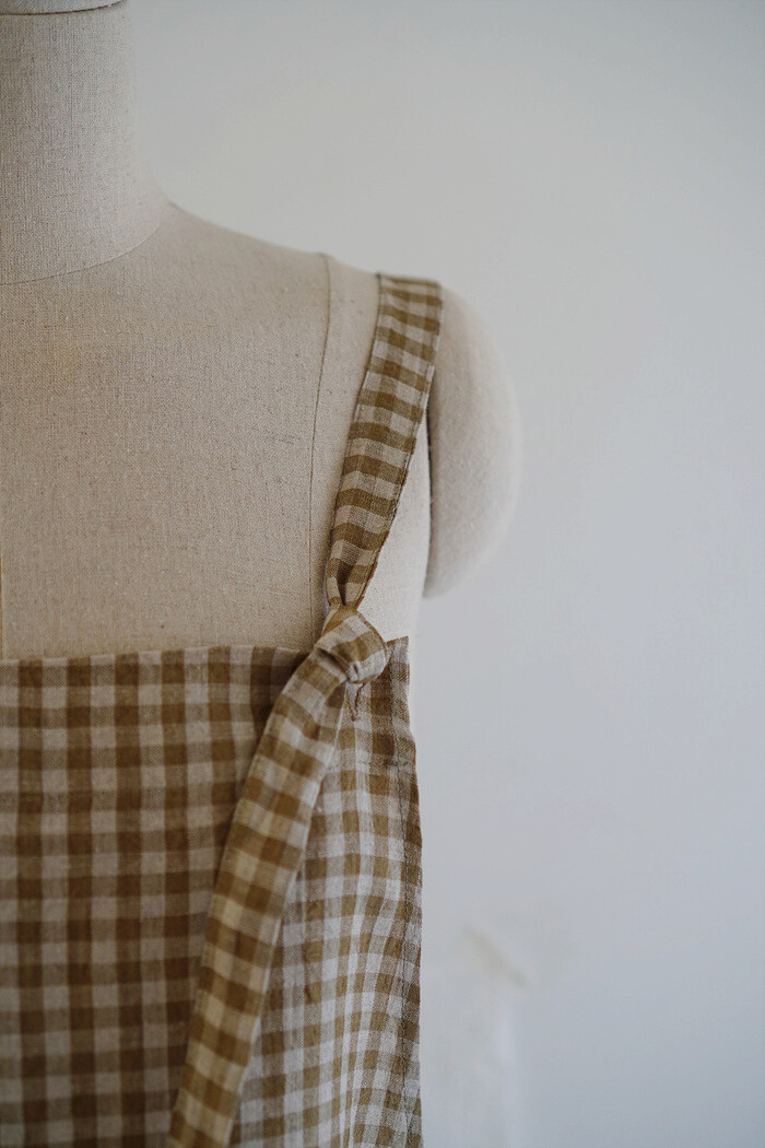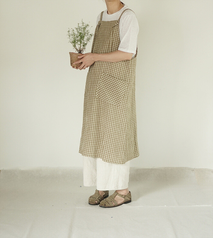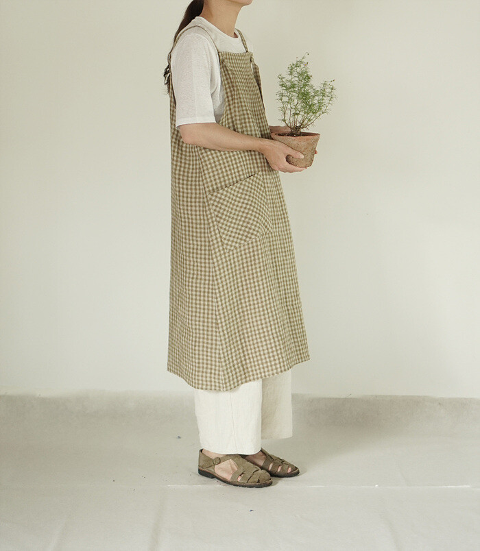 에이프런 원피스, leaf check