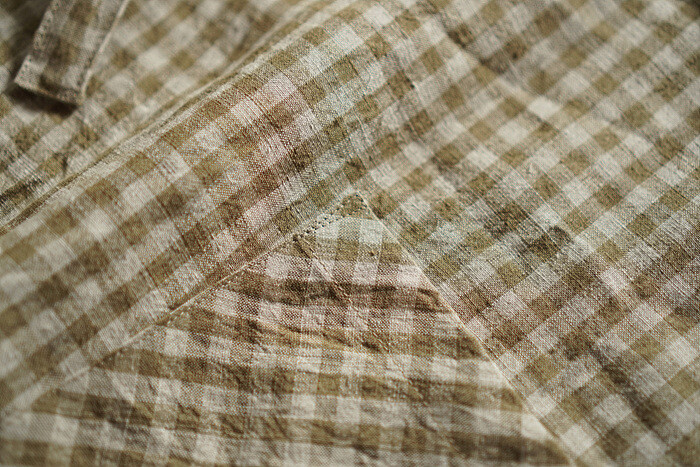 아이보리 컬러가 선염으로 제직된 깅엄체크 패턴입니다.