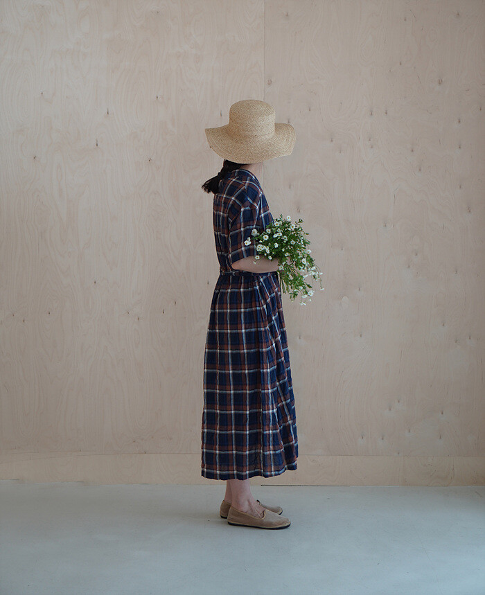 혹은 허리끈으로 밀짚모자에 리본을 묶어서