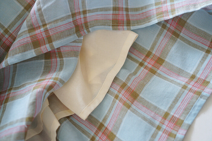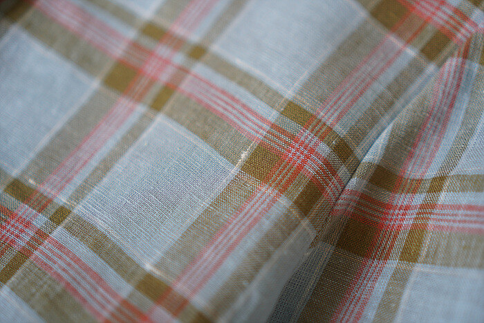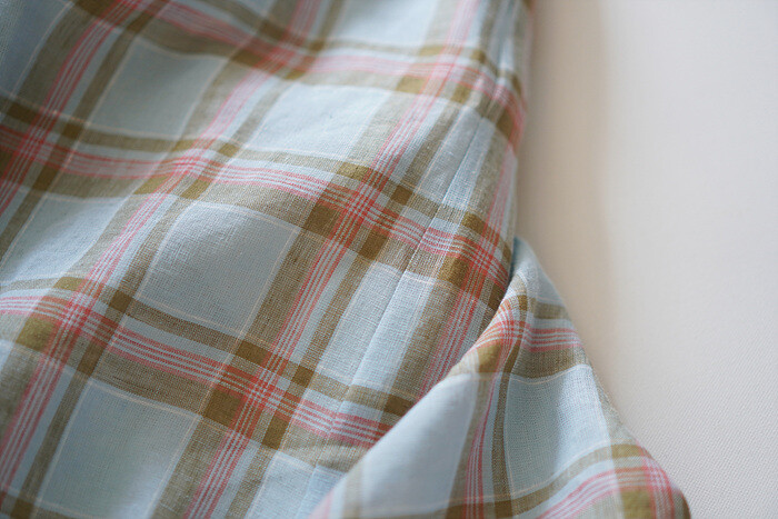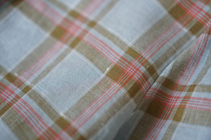 체크 무늬로 짜여진 선염 원단입니다.