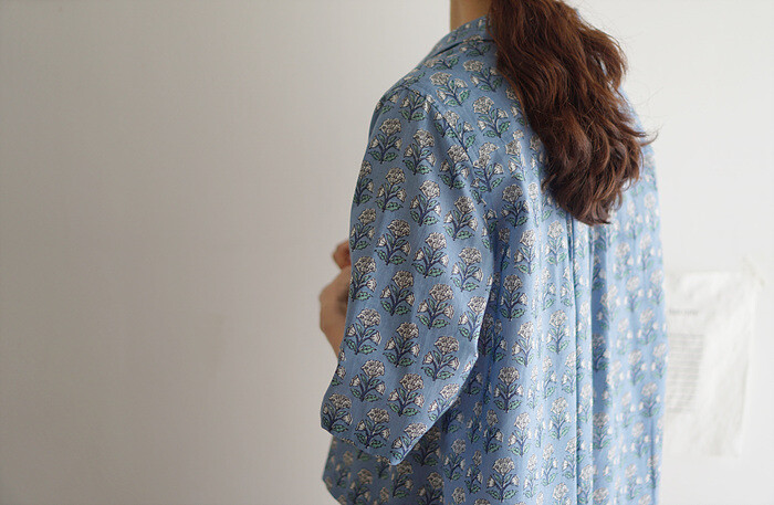 인도의 핸드 블럭 프린트 기법으로 만들어진