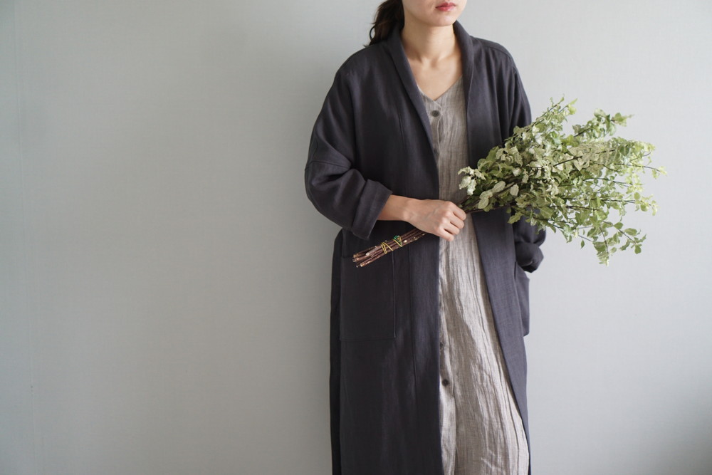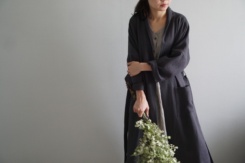 린넨 로브 롱자켓 - charcoal